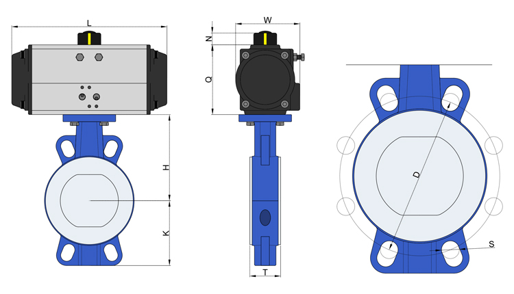 閥體一般由鑄鋼或不銹鋼制成。閥板通過閥桿與氣動(dòng)執(zhí)行機(jī)構(gòu)連接,在閥體內(nèi)旋轉(zhuǎn)實(shí)現(xiàn)開關(guān)和調(diào)節(jié)。密封由閥座密封和軸封組成,保證良好的密封性。